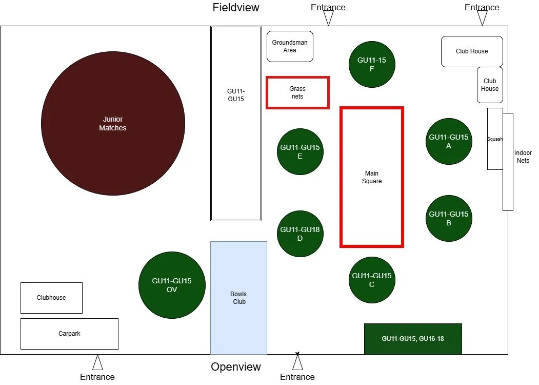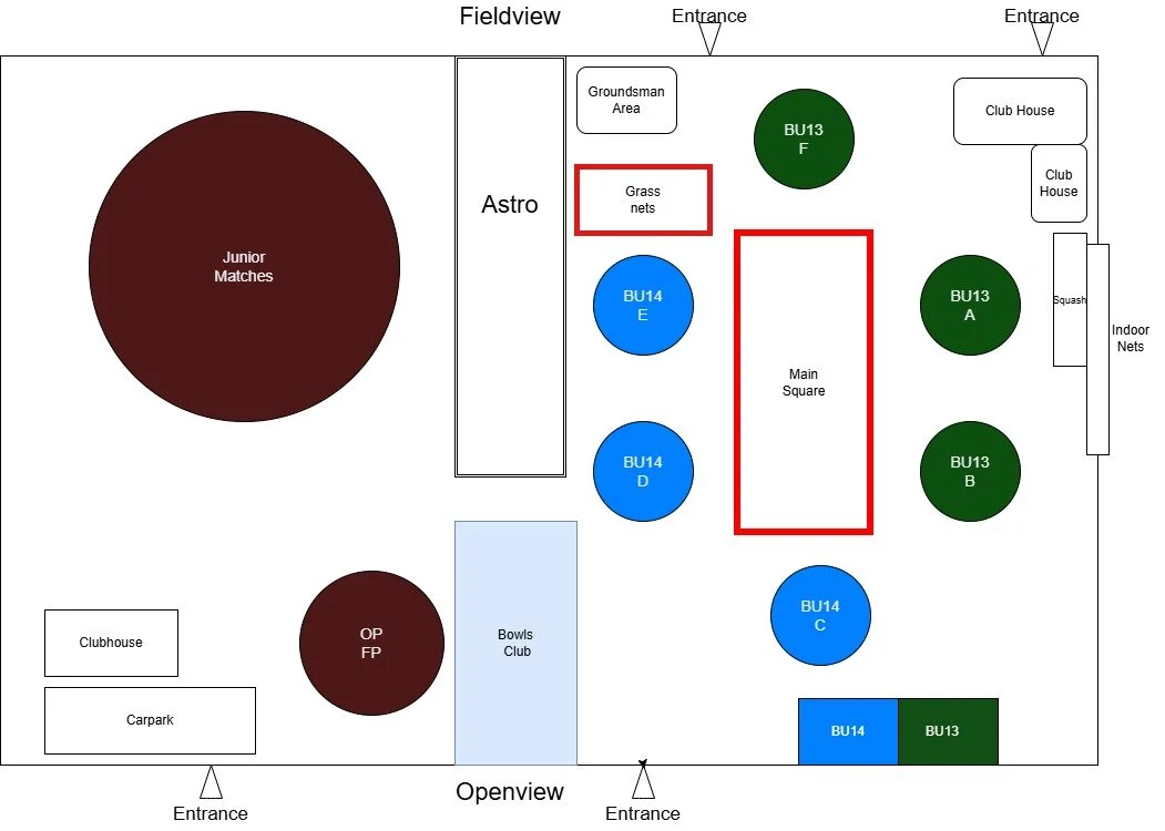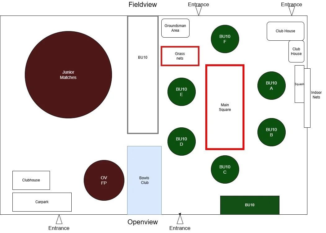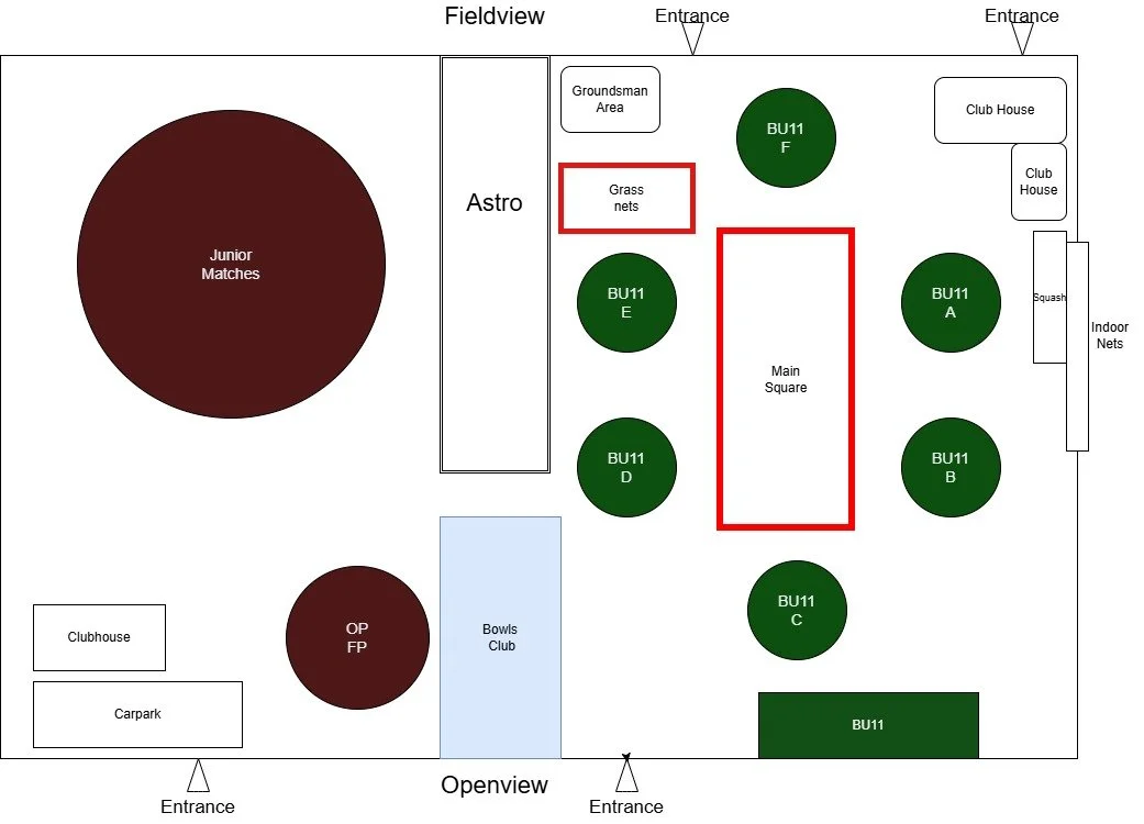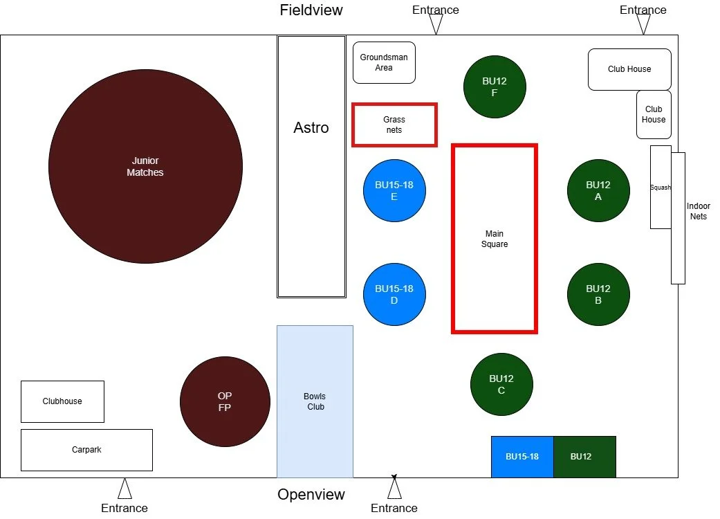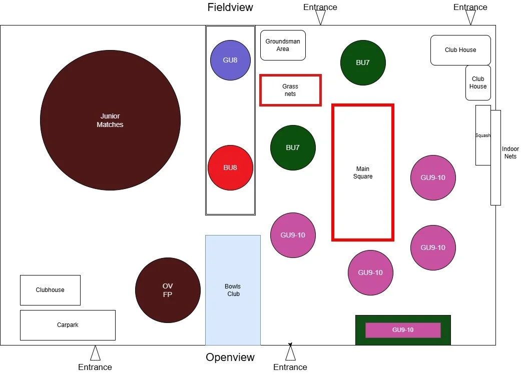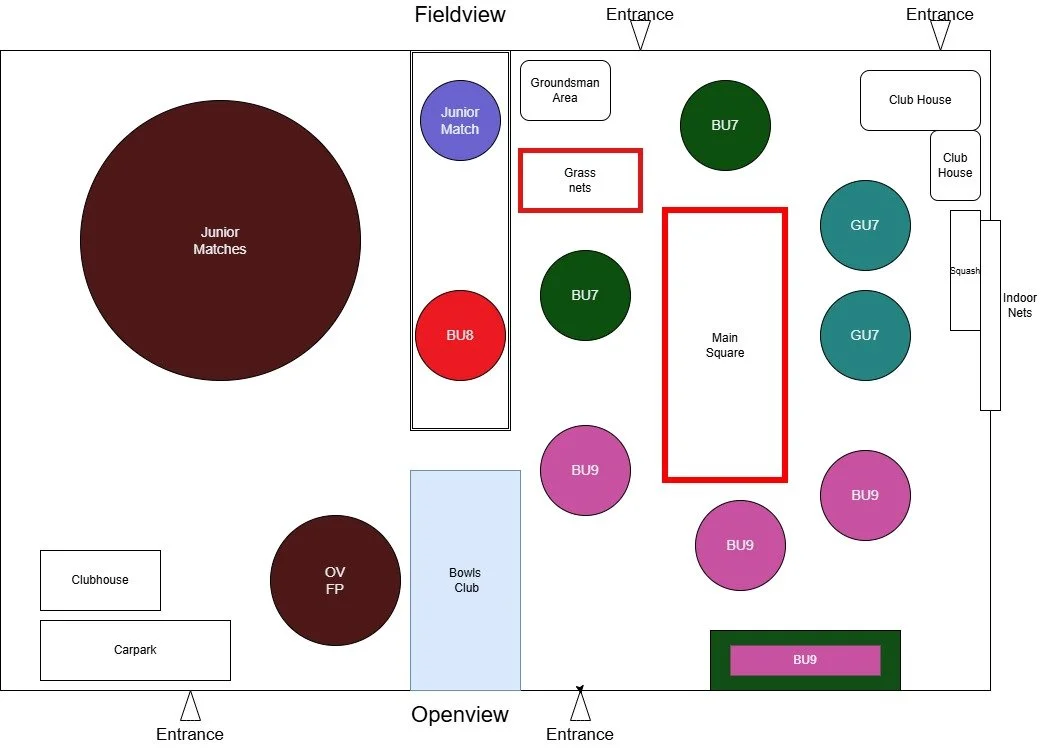 At 9:30/10:30 - 11:00 BU10 will use Nets 4,5,6 + Pitches B & D until 30 mins before adult match starts.